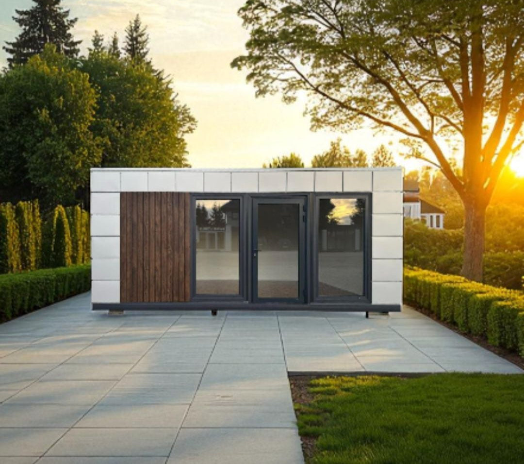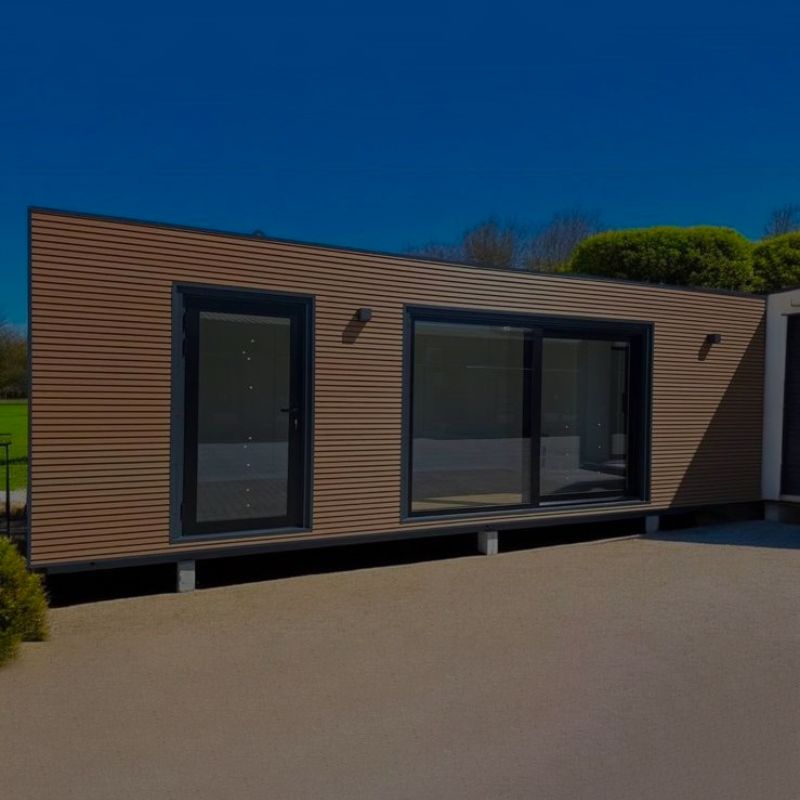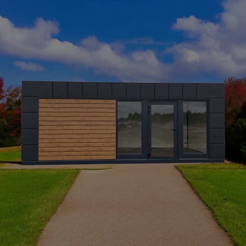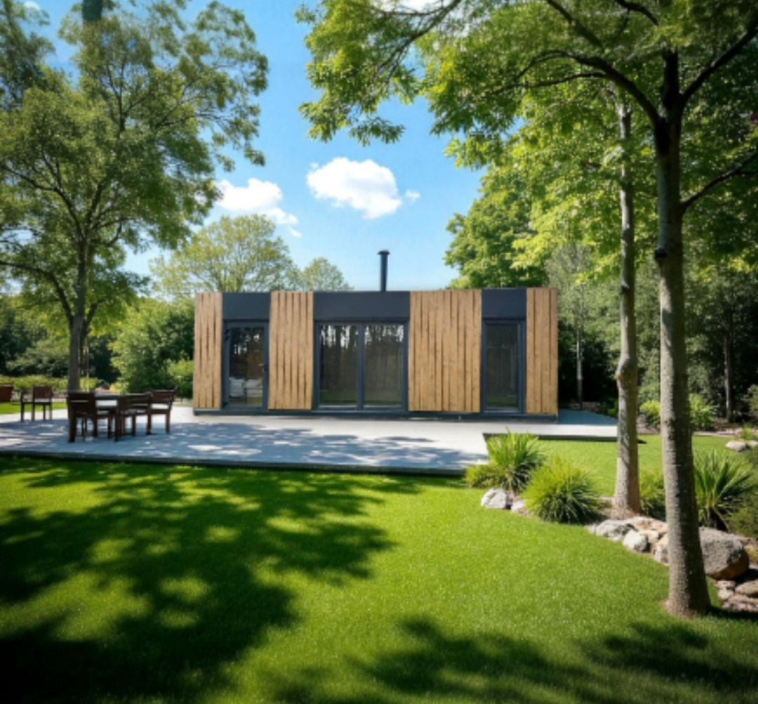 Nos modules sont livrés montés, avec un bardage métallique imitation bois ou composite, une structure renforcée, des murs isolés et tous les équipements intérieurs déjà en place (électricité, plomberie en option, éclairage LED et chauffage en option). L’installation est rapide, propre et sans travaux lourds.