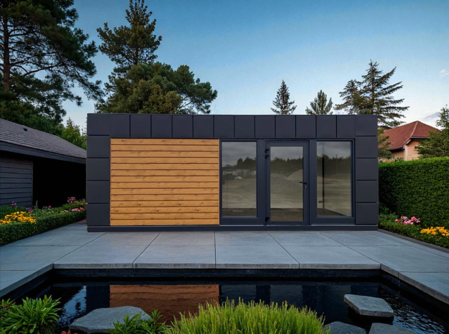 Ce studio de jardin clé en main devient rapidement un logement indépendant ou un bureau de jardin habitable à usage immédiat, sans retards ni surcoûts.