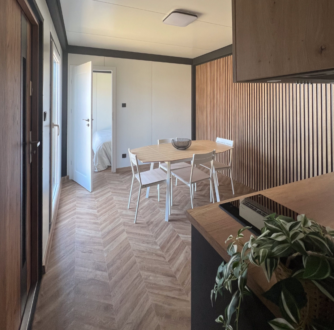 Conçu pour durer, notre mobil-home s’appuie sur une structure renforcée en acier et des matériaux robustes comme l’aluminium, le PVC et des panneaux isolants haute performance. Son revêtement extérieur, simple à nettoyer, demande très peu d’entretien. Grâce à sa conception modulaire et à ses finitions soignées, ce mobil-home conserve son esthétique et ses performances au fil du temps, offrant confort et durabilité aussi bien pour une résidence secondaire que pour un hébergement locatif.